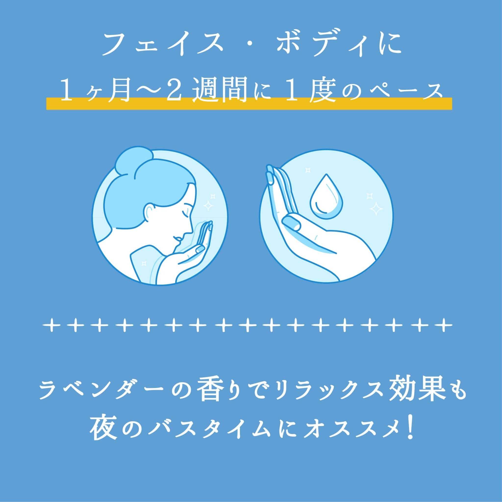 全成分表示:スクロース、オリーブ果実油*、アンズ核油、ヤシ油*、シア脂*、ラベンダー油、アボカド油*、ラベンダー花/葉/茎エキス***、リナロール**、ゲラニオール**、リモネン**【 **=精油中に含まれる成分 / ***=自社農園で収穫される植物成分】